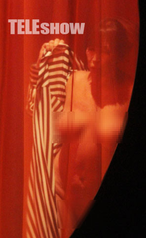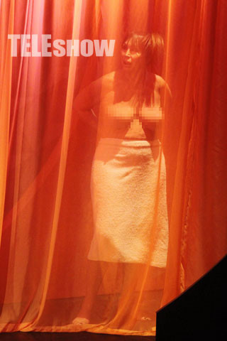 Para empezar, la jurado de "Bailando", que está lejos de ser aquella morocha despampanante que aparecía en las viejas películas argentinas y que está entrada en años y kilos, hace un desnudo completo. Sí, demasiado completo, aunque detrás de una cortina. Si la descripción es suficiente no vea las fotos, por favor.