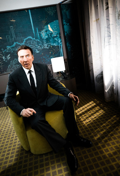 En un chiste recurrente en la película, la gente le sigue diciendo a Cage que “regresó”. Él siempre responde: “Nunca me fui a ninguna parte”. Nicolas Cage reflejado en los espejos del baño del hotel Park Lane en Nueva York, el 9 de abril de 2022. (Sinna Nasseri/The New York Times) Nicolas Cage en el hotel Park Lane de Nueva York, el 9 de abril de 2022. (Sinna Nasseri/The New York Times)