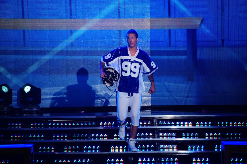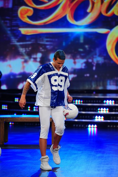 Alentado por su mamá, Alexander Caniggia y Sofía Maccaggi trajeron la mística del fútbol americano al estudio de ShowMatch. El hijo de Mariana Nannis se lookeó para bailar de forma sensual "It´s my life" de Bon Jovi con un uniforme del mencionado deporte que decía en su espalda "grosso".