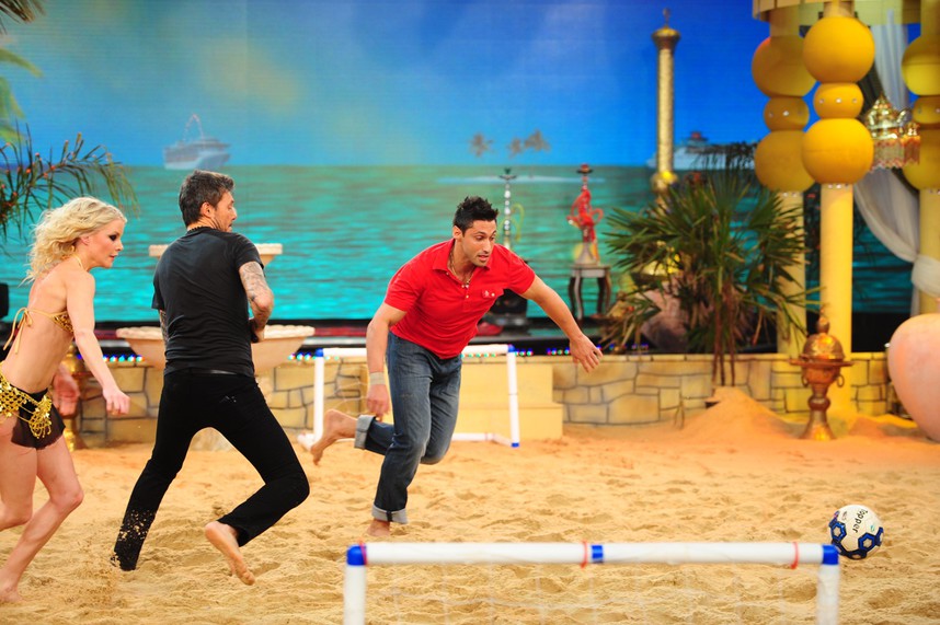 La previa del fútbol en la arena sirve a efectos del rating y por eso es de presumir que veamos mucho más de esto, mezclado con las parejas que deben mostrar sus movimientos árabes para asegurarse la continuidad en Bailando 2012.