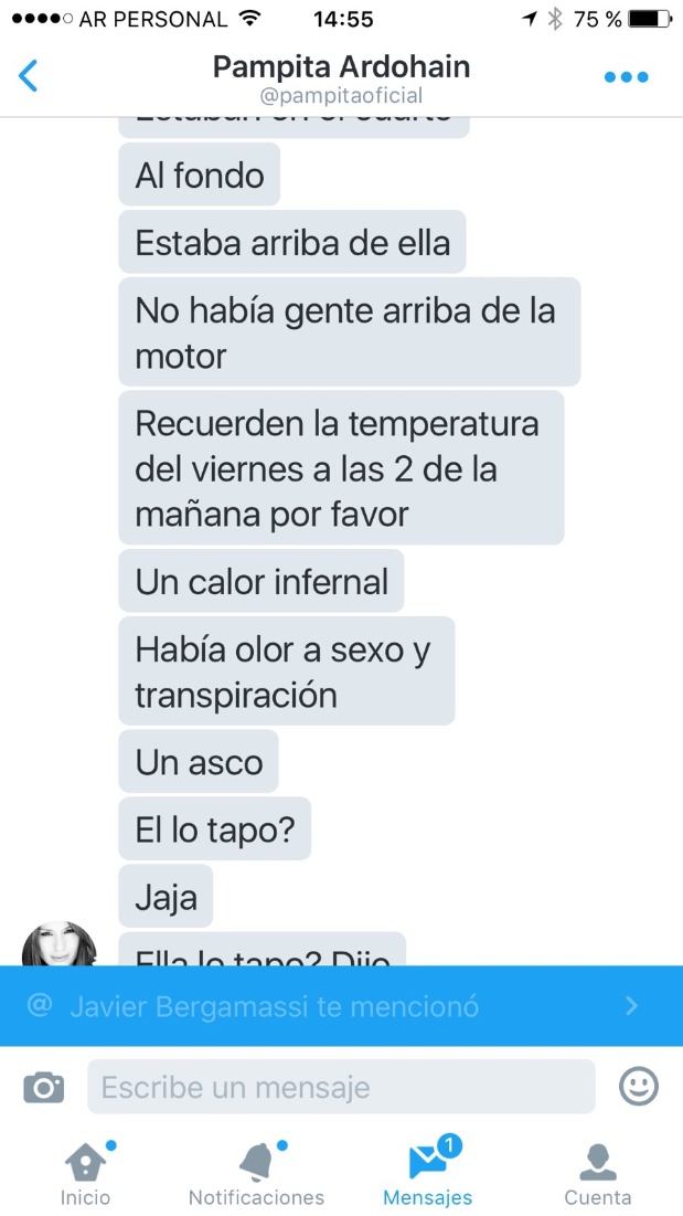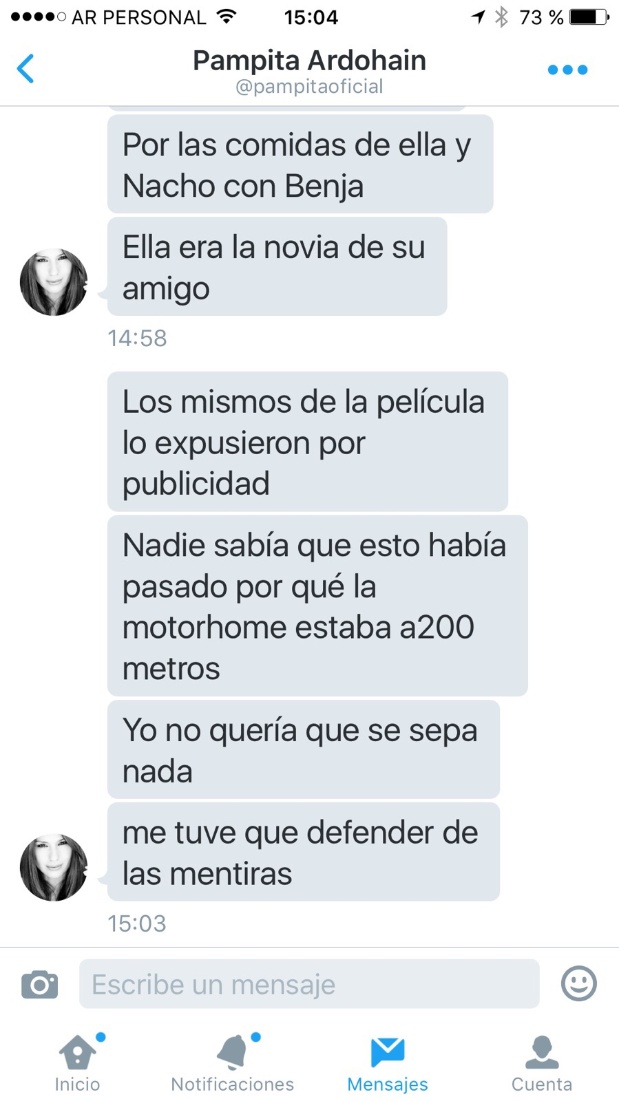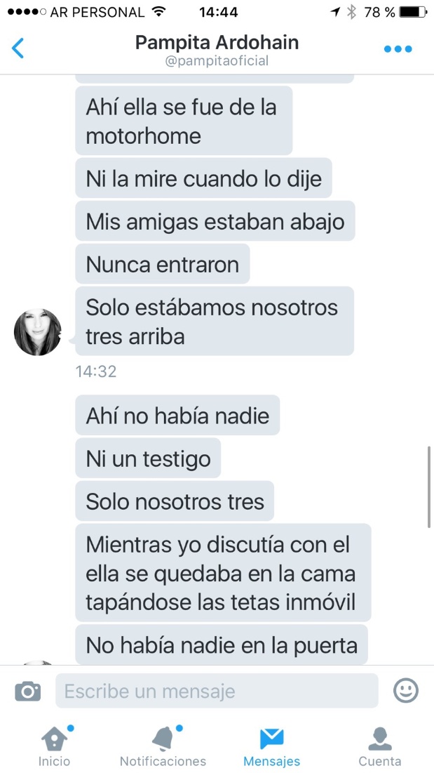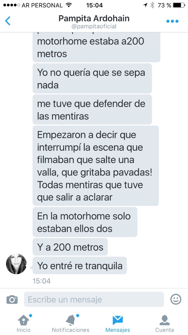 Pero Carolina "Pampita" Ardohain no se quedó atrás. Mientras la China realizaba su descargo en vivo, la modelo comenzó a enviarle tremendos mensajes a Jorge Rial, que el conductor hizo públicos este jueves. "Había olor a sexo y transpiración. Un asco. Se tapaba las tet... cuando yo entraba", le escribió Ardohain.