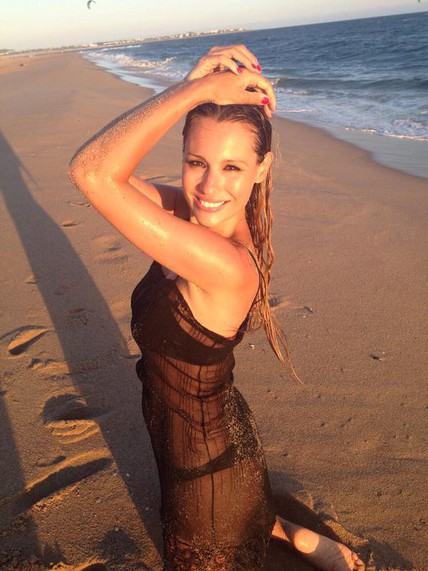 Pampita realizó unas fotos en la playa para una revista, y las compartió en su cuenta de Twitter.