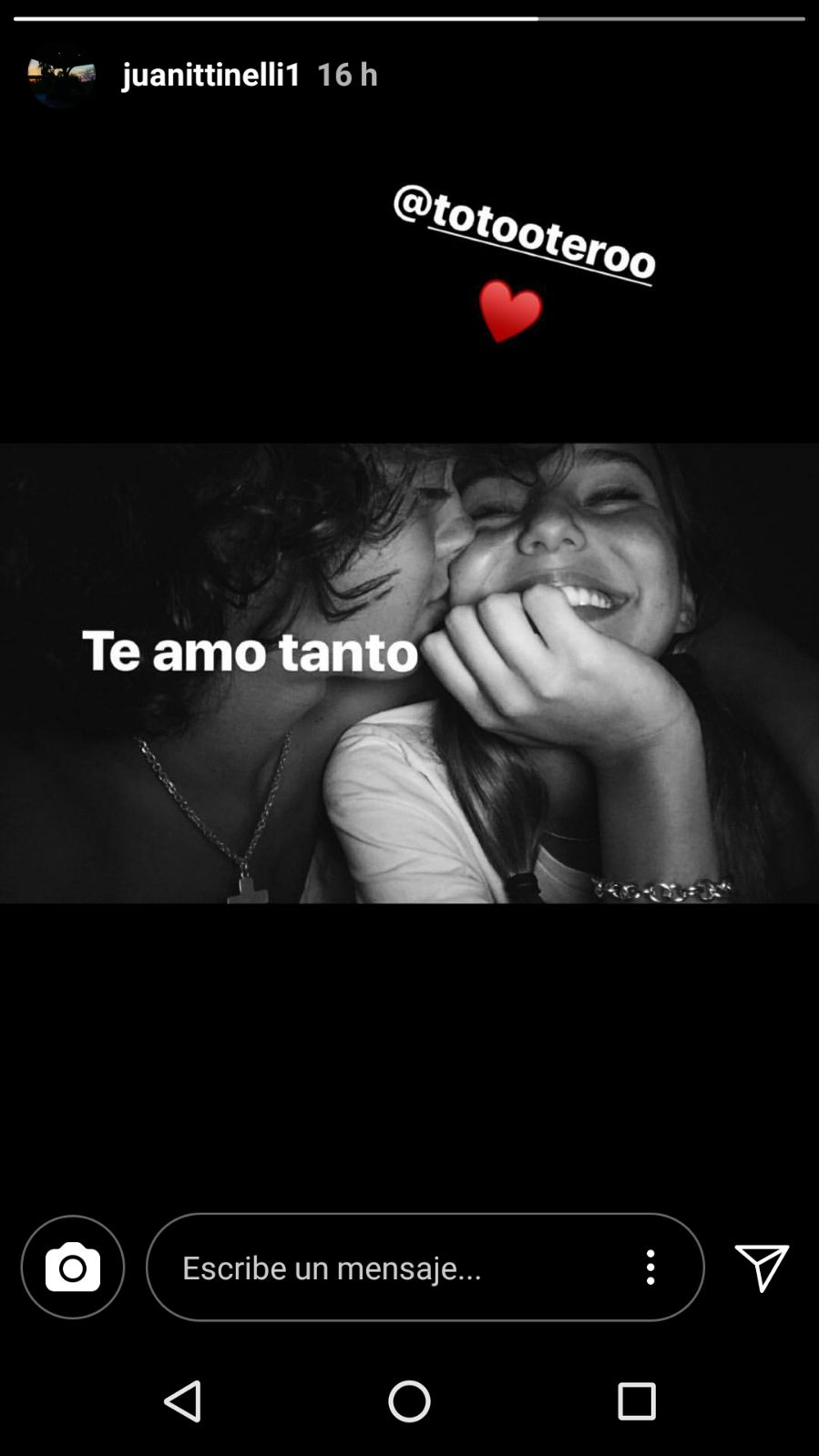 Pero todavía no habían publicado ninguna foto de los dos. Este domingo la joven subió una tierna postal junto a Toto y la dedicatoria "Te amo tanto". ¡Awww!