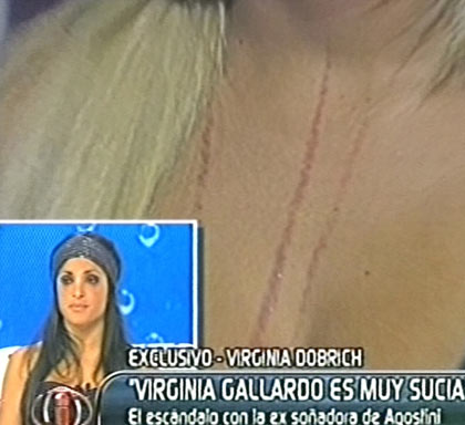 "Está haciéndose la víctima", dijo Dobrich al ver las declaraciones de Gallardo, quien hizo una denuncia penal por agresiones y mostró a Intrusos unos arañazos en el pecho, acusando a la uruguaya de ser la autora de esas marcas.