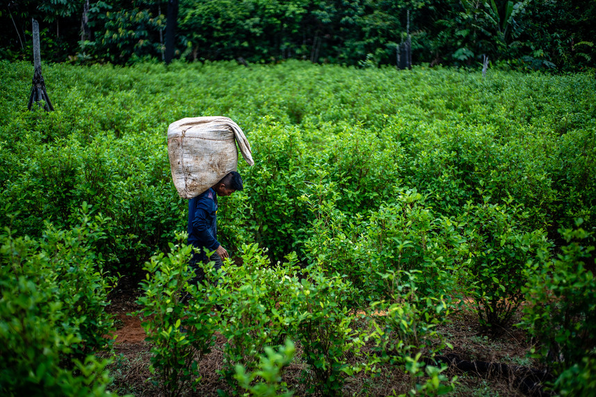 En Colombia, los campesinos arrancan las hojas de coca a mano y las mezclan con gasolina y otros productos químicos para producir ladrillos de pasta básica. Los traficantes compran la pasta, que luego se transforma en cocaína en laboratorios de toda América Latina.