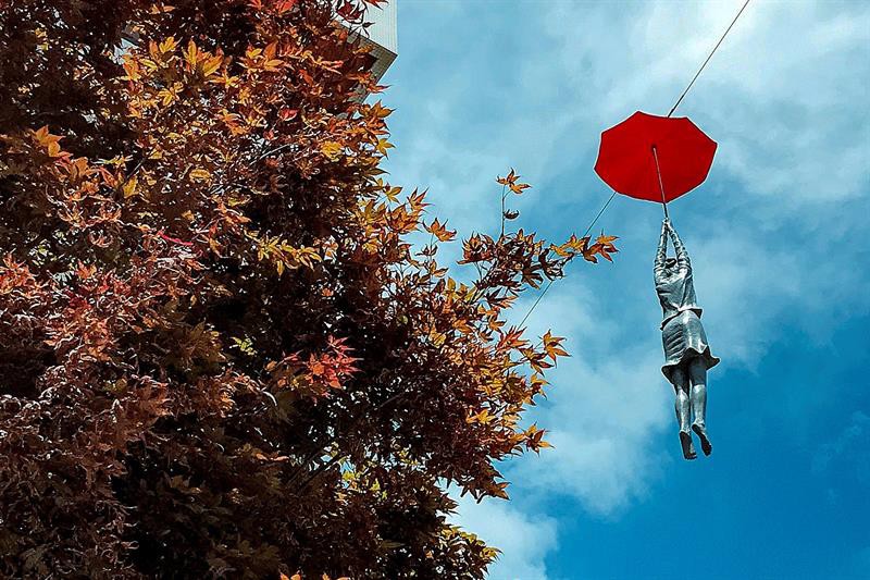 "Ahora mismo tenemos colocada una instalación de paraguas en Miami, en Coral Gables, y en una semana los comerciantes han comprobado que sus ventas han crecido bastante, ya que van muchos turistas a hacer fotos", indicó Cunha.