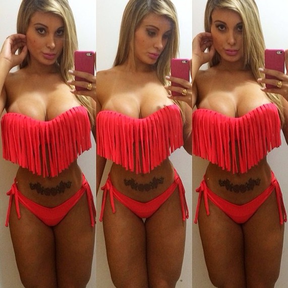 El pasado domingo, la rubia decidió dar un golpe promocional a su propia línea de bikini, y explotando su popularidad en las redes sociales se ahorró unos cuantos reales en publicidad.