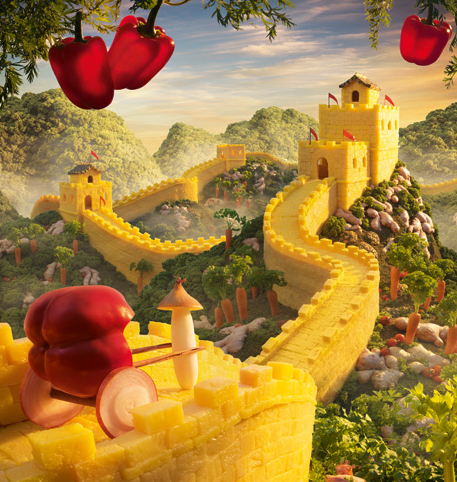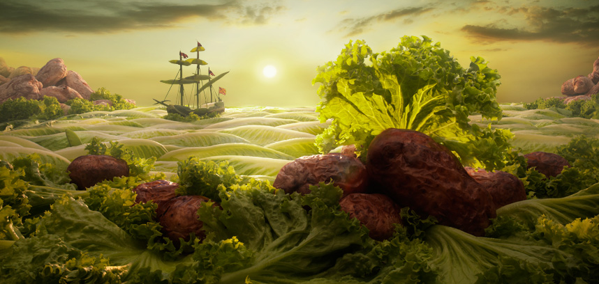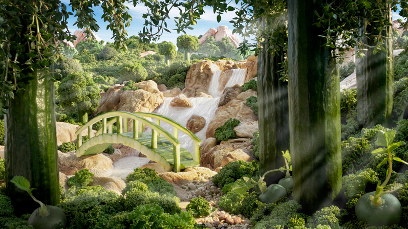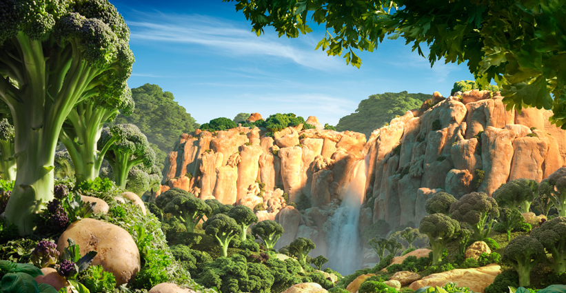 El fotógrafo londinense Carl Warner creó nuevos paisajes basándose en el uso de diferentes alimentos. Los llama "Foodscapes": paisajes gastronómicos.
