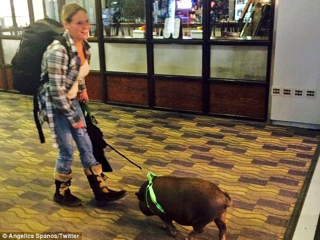 Los pasajeros de la compañía US Airways se debieron quedar perplejos. Fue a las seis de la mañana del miércoles 26 de noviembre, en el Bradley International Airport (condado de Hartford, Connecticut, Estados Unidos). Una mujer subió al avión con un cerdo vietnamita barrigón. Lo llevaba a hombros, con un lazo verde a juego con su bolso. Se dirigió a su asiento, justo al lado del de Jonathan Skolnik, profesor de la Universidad de Massachusetts-Amherst, quien, incrédulo, tecleó un correo electrónico al periódico local, The Courant, para contar la historia. Mientras tanto, otro pasajero, Rob Phelps, levantó su móvil y tomó algunas fotos que luego circularían abundantemente por internet.