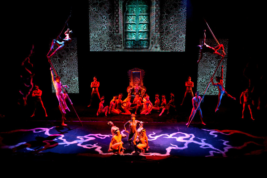 La obra, cuya producción requirió una inversión superior a los US$ 3 millones, cuenta con una piscina hidráulica que se transforma en escenario y un elevador, prometiendo una presentación artística de danza y acrobacias entre el aire, el suelo y el agua digna de los mejores espectáculos de Las Vegas.