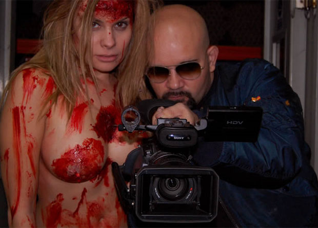 En el rodaje de "Psicosis homicida", con su director, Rubén Dos Santos