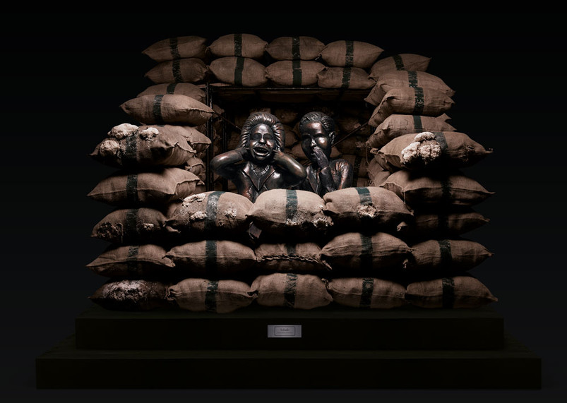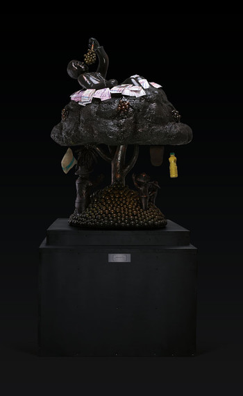 Las esculturas y estatuas se refieren a casos concretos de la historia tailandesa. En medio de una habitación, el busto de un hombre tragando decenas de pilares de construcción lleva por título "La deliciosa comida de comisarías de policía". Hace algunos años se gastaron 160 millones de dólares en la construcción de cerca de 400 comisarías de policía que nunca vieron la luz.