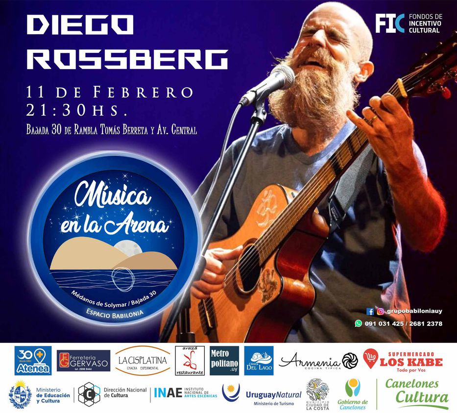 Ese mismo día, pero en la bajada 30 de la Rambla Tomás Berreta (a la altura de avenida General), en Médanos de Solymar, se presenta Diego Rossberg en el marco de "Música en la Arena", a las 21:30 horas.