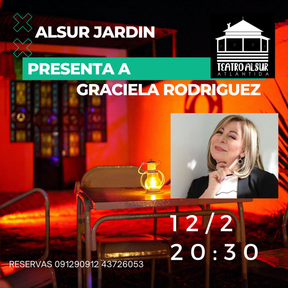 En Teatro Alsur, en Altántida la actriz Graciela Rodriguez se presentará en Alsur Jardín, también el sábado a las 20:30 horas.