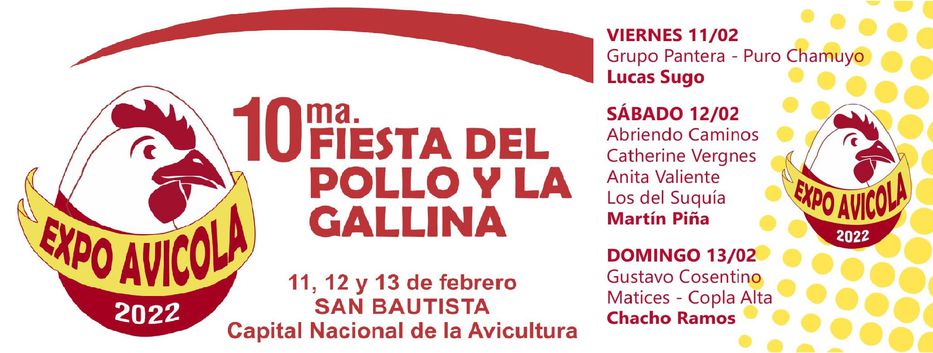 En San Bautista, capital nacional de la avicultura, se celebra este fin de semana, de viernes a domingo, la décima Fiesta del Pollo y la Gallina, con la presencia de músicos como Lucas Sugo, Martín Piña y Chacho Ramos.