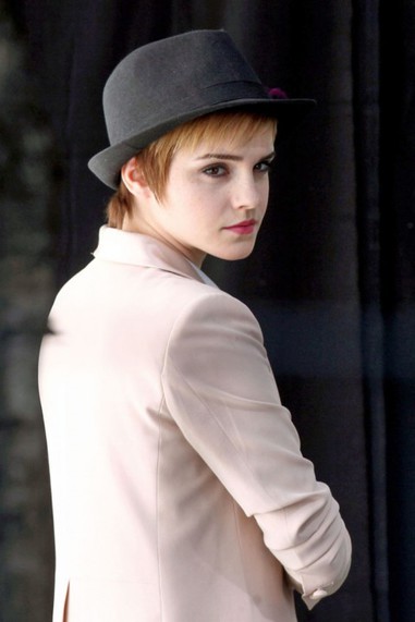Emma Watson participó de una producción fotográfica para Lancome, en la cual posó con un conjunto de color natural, acompañando el look con un gorro negro que enmarcaba su perfecto rostro.