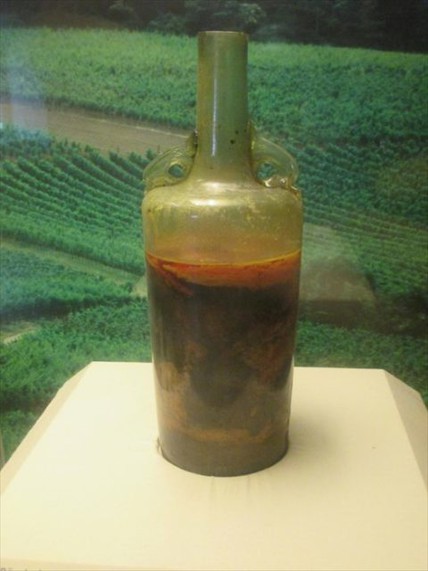 Se trata de la "Botella de vino de Espira", también conocida como 'Römerwein'. Según los estudios realizados sobre a esta reliquia, podría llevar cerrada cerca de diecisiete siglos, dado que su origen se sitúa entre los años 325 y 359. Es un envase de gran tamaño, con capacidad para un litro y medio de líquido y un asa a cada lado, probablemente para facilitar el consumo del vino sin necesidad de utilizar vasos o copas.