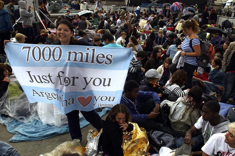 Algunos admiradores están desde hace varios días, pese a las fuertes lluvias y las frescas temperaturas reinantes. En medio de las bolsas de patatas fritas o caramelos tratan de dormir un poco bajo las mantas, los impermeables y los grandes paraguas.