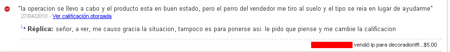 A mediados del corriente mes, fue creada en la vecina orilla una página de Facebook dedicada a recopilar las más hilarantes calificaciones negativas en Mercad Libre, sin duda la plataforma de venta más popular en el Rio de la Plata.