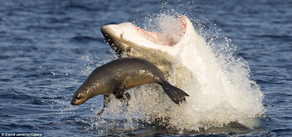 "Pese ser llamado tiburón blanco, estos peces tiene las espaldas oscuras, por lo que se hace difícil distinguirlos desde la superficie. Este factor juega en contra de la foca cuando ella se sumerge", explica el fotógrafo en declaraciones citadas por Daily Mail.