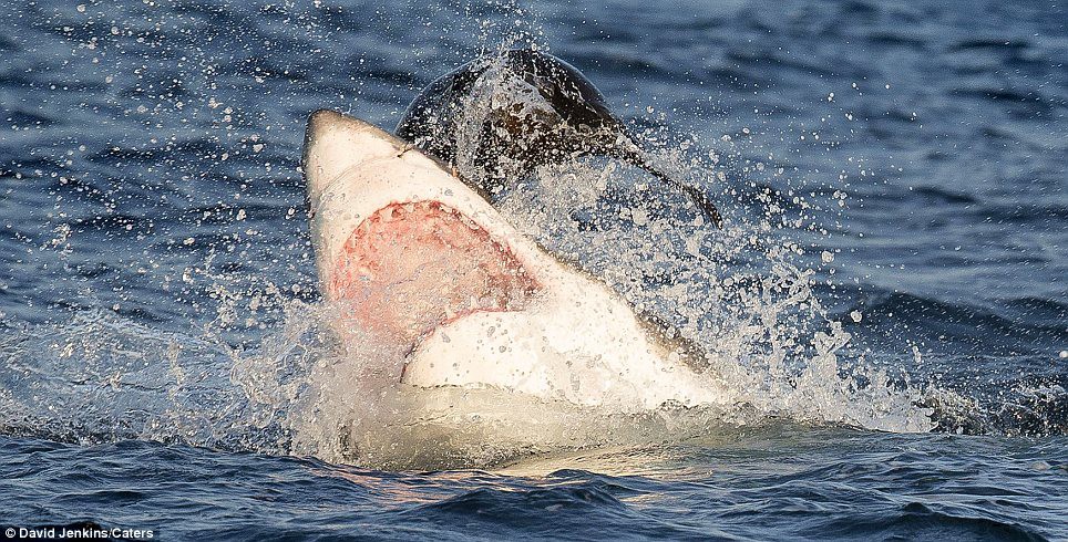 Mientras paseaba en barco cerca de ciudad del cabo, fue testigo de la feroz cacería de una foca por parte de un gran tiburón blanco.