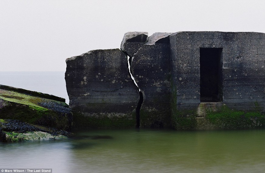 Muchas de las defensas de la Segunda Guerra Mundial captadas por el fotógrafo Marc Wilson en su viaje han acabado por integrarse al paisaje, erosionándose de forma lenta y solitaria por el agua y el viento.