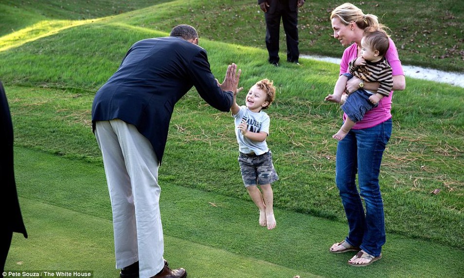 Una de las instantáneas más cándidas muestra al presidente siendo sorprendido por un mini Spiderman (hijo de un miembro de su staff). Obama reacciona divertidamente como si hubiese caído en la trampa del mínimo superhéroe.