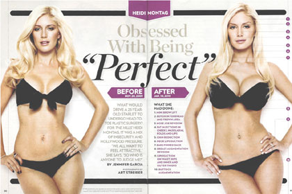 Heidi Montag debe gran parte de su fama al cambio de look extremo al que se sometió hace un año, cuando entró al quirófano para realizarse una decena de cirugías plásticas de una sola vez.