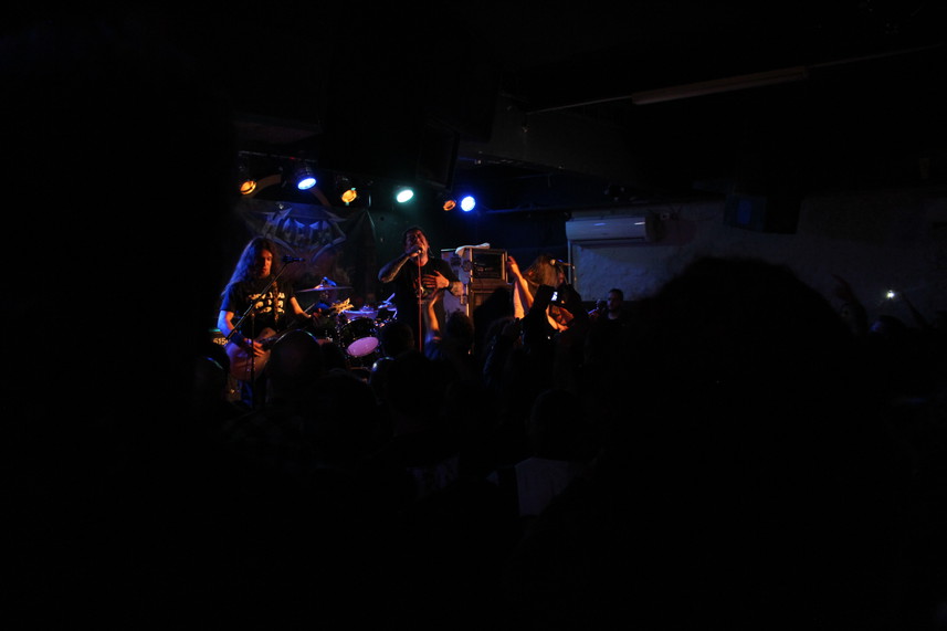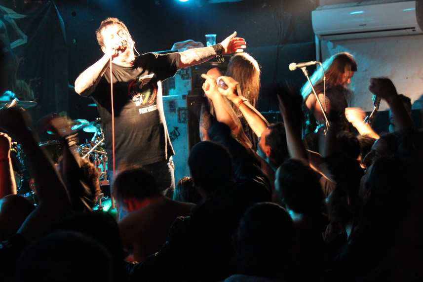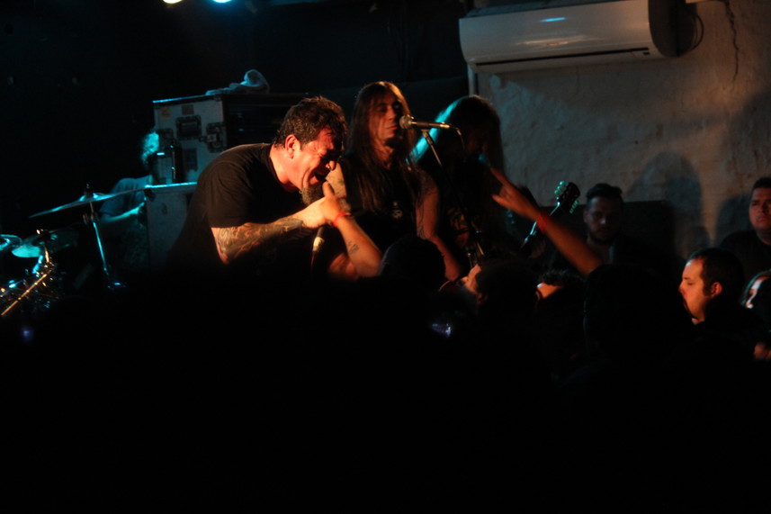 La energía no decayó ni un solo instante desde que pisaron el escenario los músicos. Walter Meza, el actual vocalista, comenzó el toque incitando al público, que llenaba el lugar, a demostrar "qué tan vivo está el metal uruguayo", a la vez que sonaban los primeros acordes de "Rompo el dolor", un tema clave de su disco "Eternos" (1999), uno de los dos recordados en esta gira, junto con "Vence", (1997).