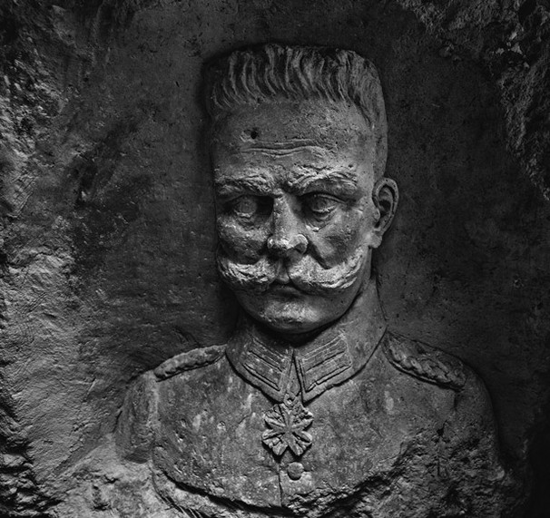En el lugar, el escritor y el fotógrafo encontraron grafitis hechos por los ingenieros alemanes que ocupaban ese lugar, que pasaban días y días excavando sus galerías y atentos a las que excavaban sus enemigos. En el muro podían leer sus nombres y los de su regimiento, junto a la frase "¡Dios por el Kaiser!".