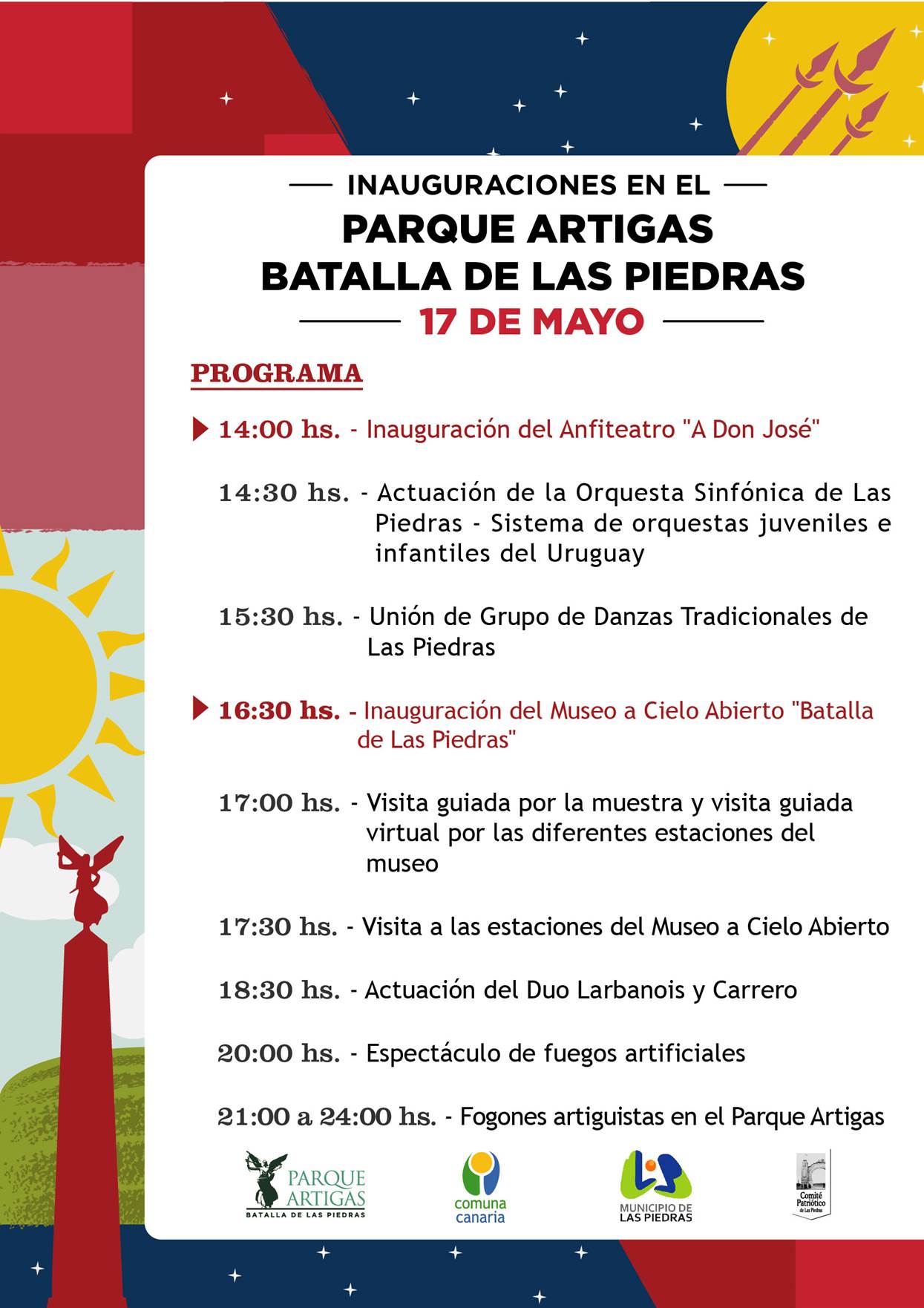 En el marco de los festejos de un nuevo aniversario de la Batalla de Las Piedras, el domingo 17 de mayo a las 14:00, la Comuna Canaria inaugura el Anfiteatro "A Don José" en el Parque Artigas - Batalla de Las Piedras.