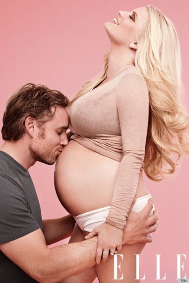 La cantante Jessica Simpson es protagonista de la última portada de la revista Elle, donde se animó a posar desnuda y luciendo su embarazo de ocho meses.