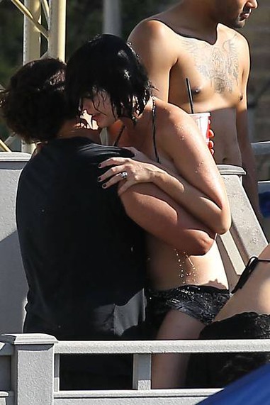 Según consigna la agencia Grosby, Katy reaccionó ante la situación con un acceso de risa casi histérico, antes de que sus amigos acudieran a socorrerla, ocultándola de mirones.