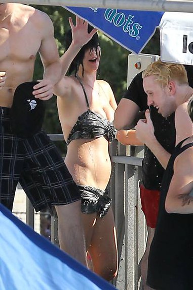 De regreso a Estados Unidos, Katy fue de paseo a un parque acuático, lugar concurrido debido al intenso calor del verano boreal. Ya sea por falta de fuerza a la hora de apretar el nudito de su traje de baño, o por los resbaloso efectos de alguna crema corporal, la parte inferior del traje de baño se deslizó repentinamente "hacia el sur", exponiendo la retaguardia de la cantante.