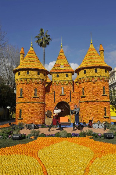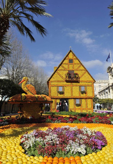 Una casa tradicional de Alsacia hecha con limones y naranjas, así como réplicas de la Torre Eiffel o una estación del Metro fueron algunas de las figuras para las que se emplearon unas 145 toneladas de cítricos.