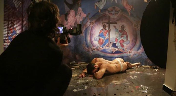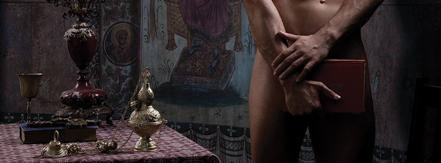 Los religiosos semidesnudos aparecen en pases fotográficos producidos en iglesias del sur de Moscú, según informa la agencia noticiosa Ansa.