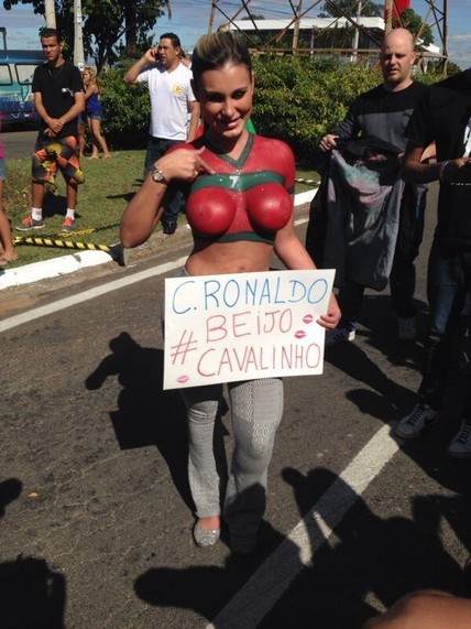 Andressa Urach, una de las más famosas competidoras del certamen Miss Bumbum (que premia los mejores traseros brasileños) decidió recibir a Cristiano Ronaldo a su llegada a Brasil de la forma más provocativa posible.