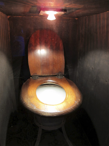 Los visitantes pueden emular a sus antepasados en la muestra y sentarse encima del agujero de las espartanas letrinas de madera que el rey Chulalongkorn impuso por ley para todo el público a principios del siglo XX.