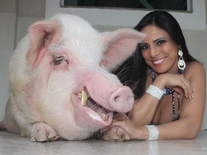 Una de las reinas del desfile de carnaval de Rio de Janeiro, en el que se presentará semidesnuda sobre un carro alegórico, confesó que comparte su pasión por el carnaval con su "bebé"... un cerdo de 250 kilos.
