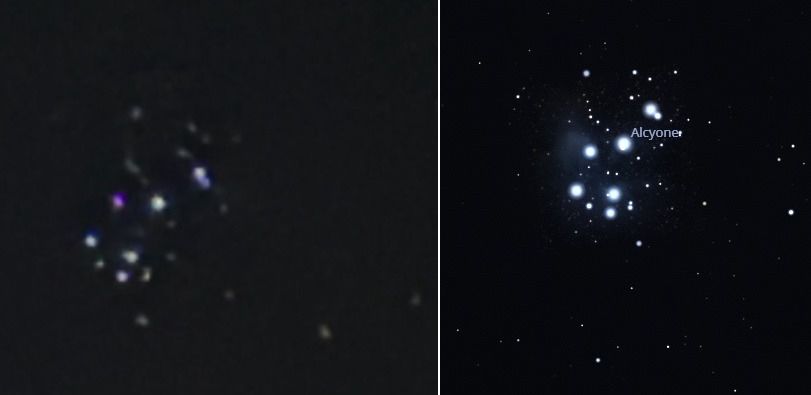 “Las luces que aparecen en la imagen no corresponden a un fenómeno extraño. Se trata de una fotografía borrosa del cúmulo estelar conocido como Las Pléyades, popularmente llamado en Uruguay Los Siete Cabritos, ubicado al oeste del Cinturón de Orión”, expresó Pescador.