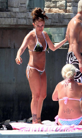 Jenna Jameson, que durante 15 años fue la reina del porno, con más de una centena de películas triple X en su haber, está completamente retirada de la industria.Madre hace poco de gemelos, se dedica a la familia, tal como demuestran estas fotografías publicadas por el portal WWTDD, en las que se la ve más que solícita, untando con bronceador a su pareja, el luchador Tito Ortiz.