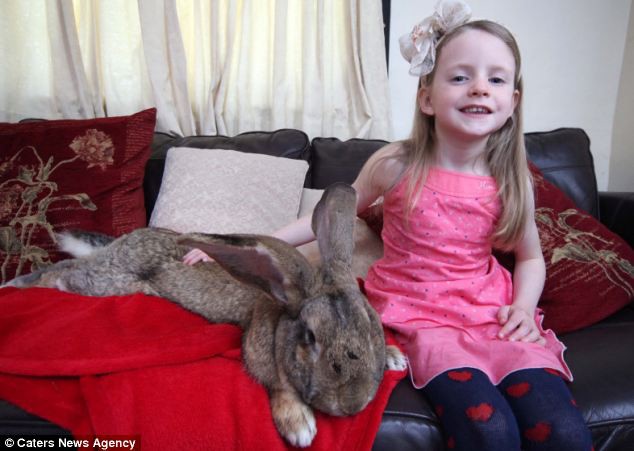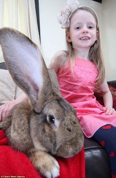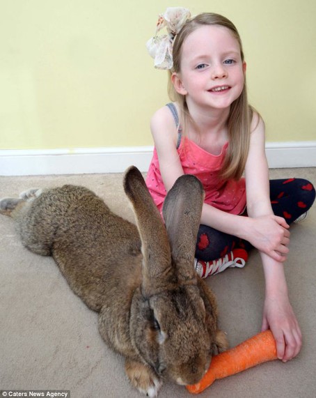 Darius, un hermoso conejo de carne y hueso, se ha propuesto emular al dibujo animado Bugs Bunny y convertirse en el conejo más grande del mundo. Con cinco años de edad, pesa más de 22 kilos y mide 134 centímetros, casi tanto como su amiga, una niña de seis años nieta de su dueña.