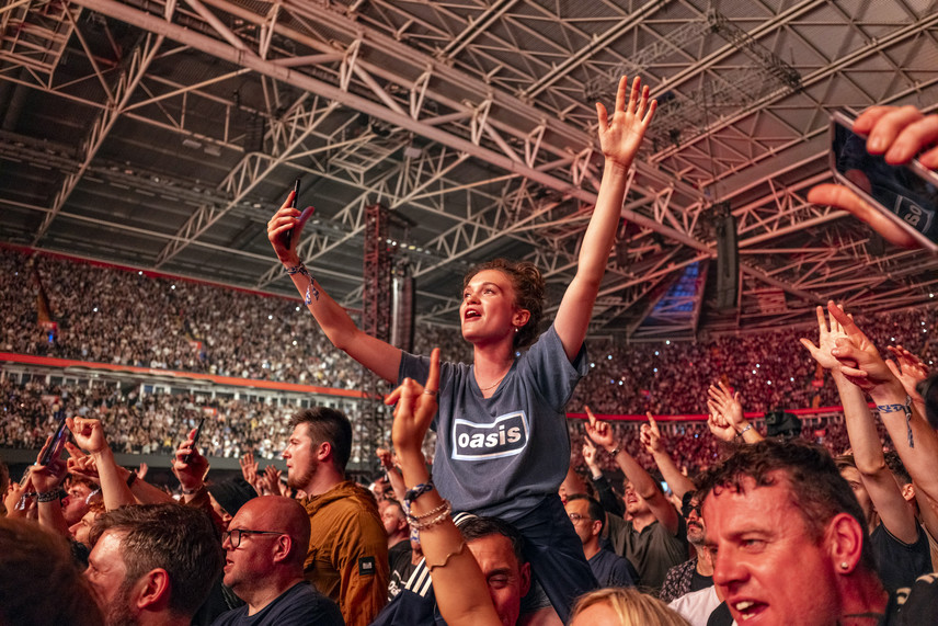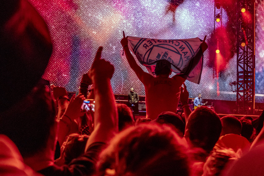 Antes incluso de que Oasis subiera al escenario, al menos un fan fue sacado en camilla, agitando su puño en el aire. Pero solo al final del concierto se produjo el verdadero alboroto. Durante “Rock ‘n’ Roll Star”, un fan encendió una bengala a un lado de la pista, y lanzó un estruendo de llamas y humo al aire. Unas canciones más tarde, durante “Don’t Look Back in Anger”, otra bengala, ahora casi en el centro del estadio. El aire quedó impregnado de un olor acre.