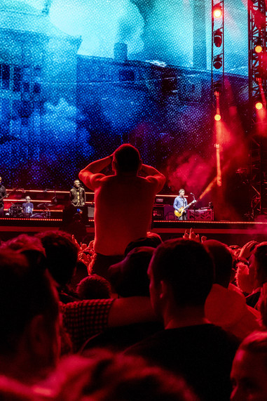 Hasta ese momento, salvo cuando los dos hermanos levantaron los brazos en un gesto de victoria ligeramente cómico al comienzo de la noche, no estaba claro si Noel y Liam habían intercambiado una palabra, o incluso una mirada, durante todo el espectáculo. Eran imanes con polaridades coincidentes, que se mantenían firmes a una distancia razonable. Durante toda la noche, Bonehead se había interpuesto entre ellos, un silencioso supervisor del orden, interpretando una coreografía invisible de sentido común.