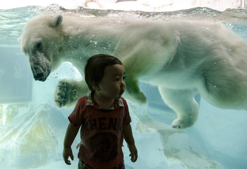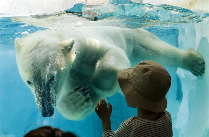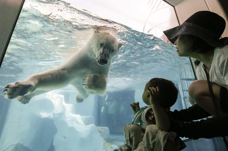 Sabido es que los osos polares disfrutan mucho del agua, y es por eso que el recinto de estos animales en el zoo japonés incluye una gran piscina.