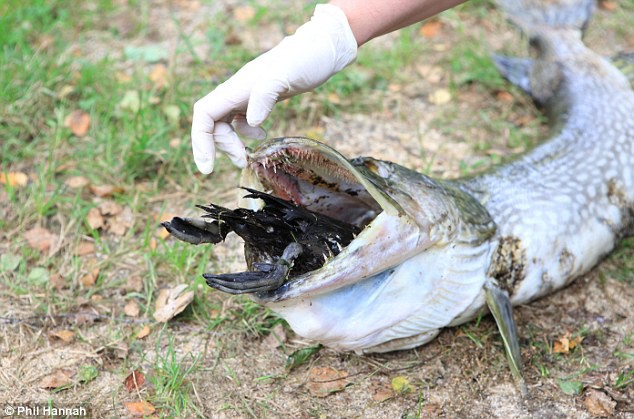 Según Atkinson, el pez debió morir asfixiado al intentar tragar el pato, para derivar luego hacia la orilla.