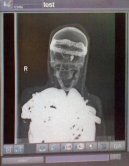 Los rayos X muestran que una capa metálica cubre los huesos del individuo de 1,49 m y género desconocido.