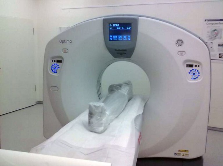 Los vendajes de la momia, que no fueron retirados por temor a dañar los restos, son del siglo XX y fueron tejidos a máquina, dijo Kettler, dentista que asistió a la realización de la tomografía computarizada.