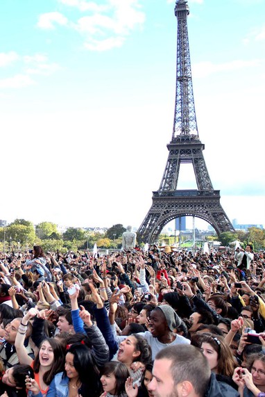 Por el mismo canal podía verse al cantante en pie al borde de las escalinatas del Trocadero que conducen hacia la torre Eiffel, ensayando brevemente con su público los principales movimientos de la danza, antes de repetirlos ya sobre una superficie horizontal acompañado de varios bailarines.