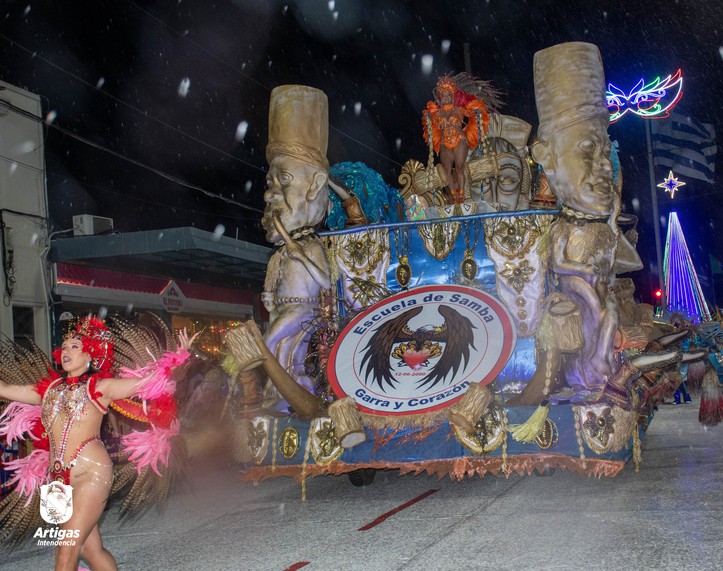La capital departamental, Artigas, se transforma durante varias jornadas en un escenario a cielo abierto. El carnaval artiguense apuesta a la estética y dinámica propias del samba, una característica que está ligada a su cercanía con Brasil.